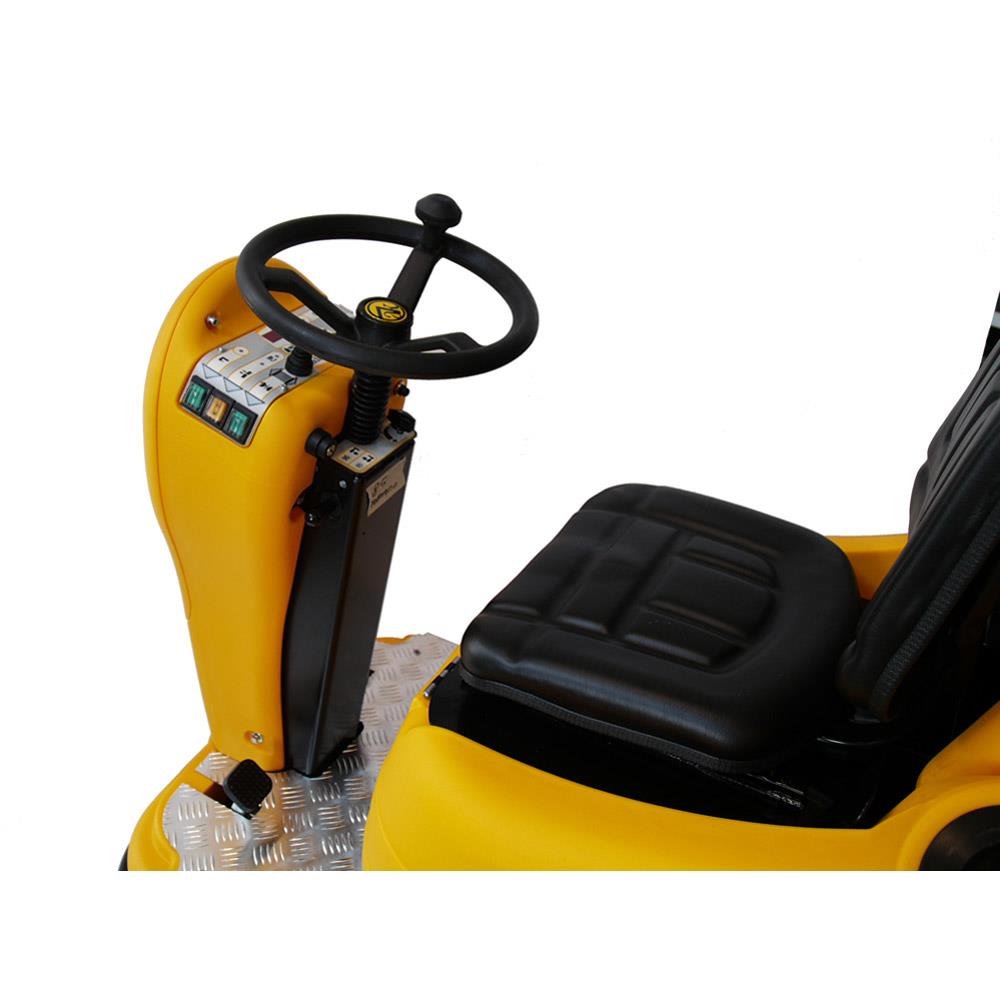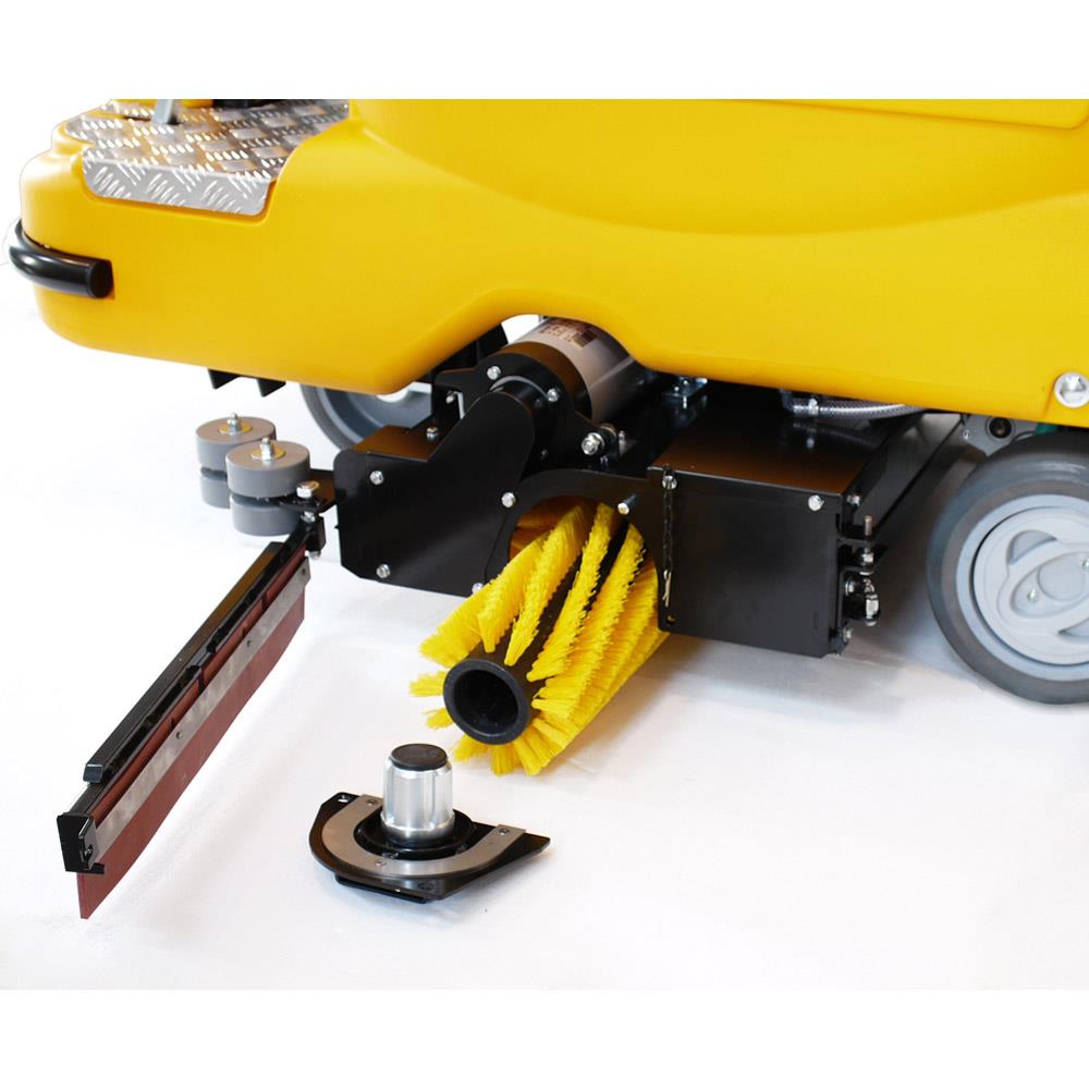 Version einer Scheuersaugmaschine, bestehend aus Bürstendeck mit zwei Walzenbürsten, die das Brauchwasser zu einem Sammelbehälter führen, sodass eine raschere Reinigung und Instandhaltung gewährleistet ist.