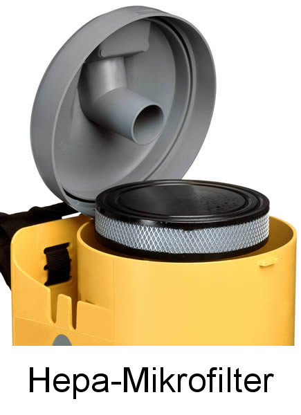 Kompakter, leichter und wendiger Rucksackstaubsauger mit hoher Leistung. Wird wie ein Rucksack getragen. Er lässt die Hände frei, stört den Bediener nicht in seinen Bewegungen und macht die Arbeit so schneller, effizienter und leichter! Doppelte Filtration (Kartuschenfilter + Filterbeutel). Filterung der Abluft. Aussparungen für Zubehör. Thermoschalter am Motor.